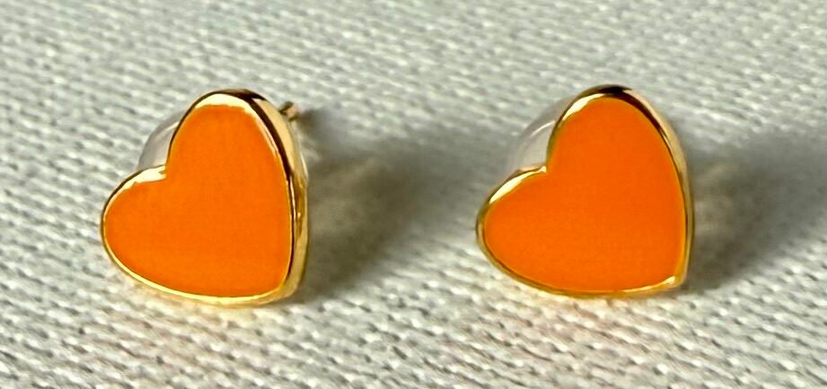 Small Orange Heart Earrings