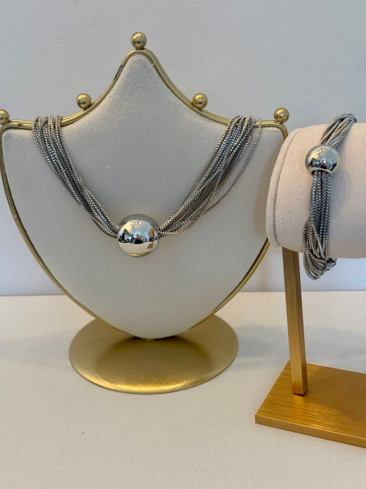Silver Ball Necklace & Bracelet Set quantity